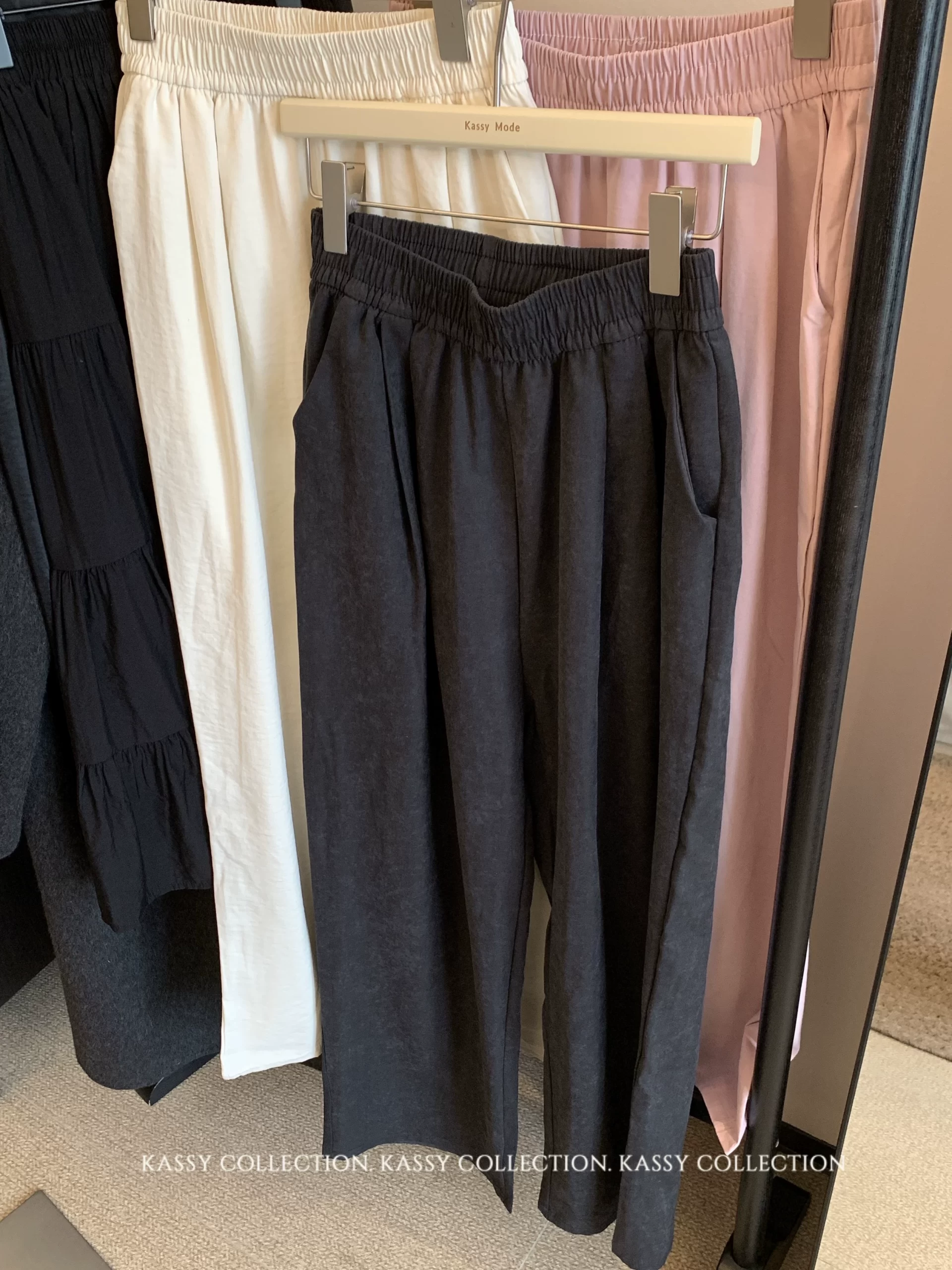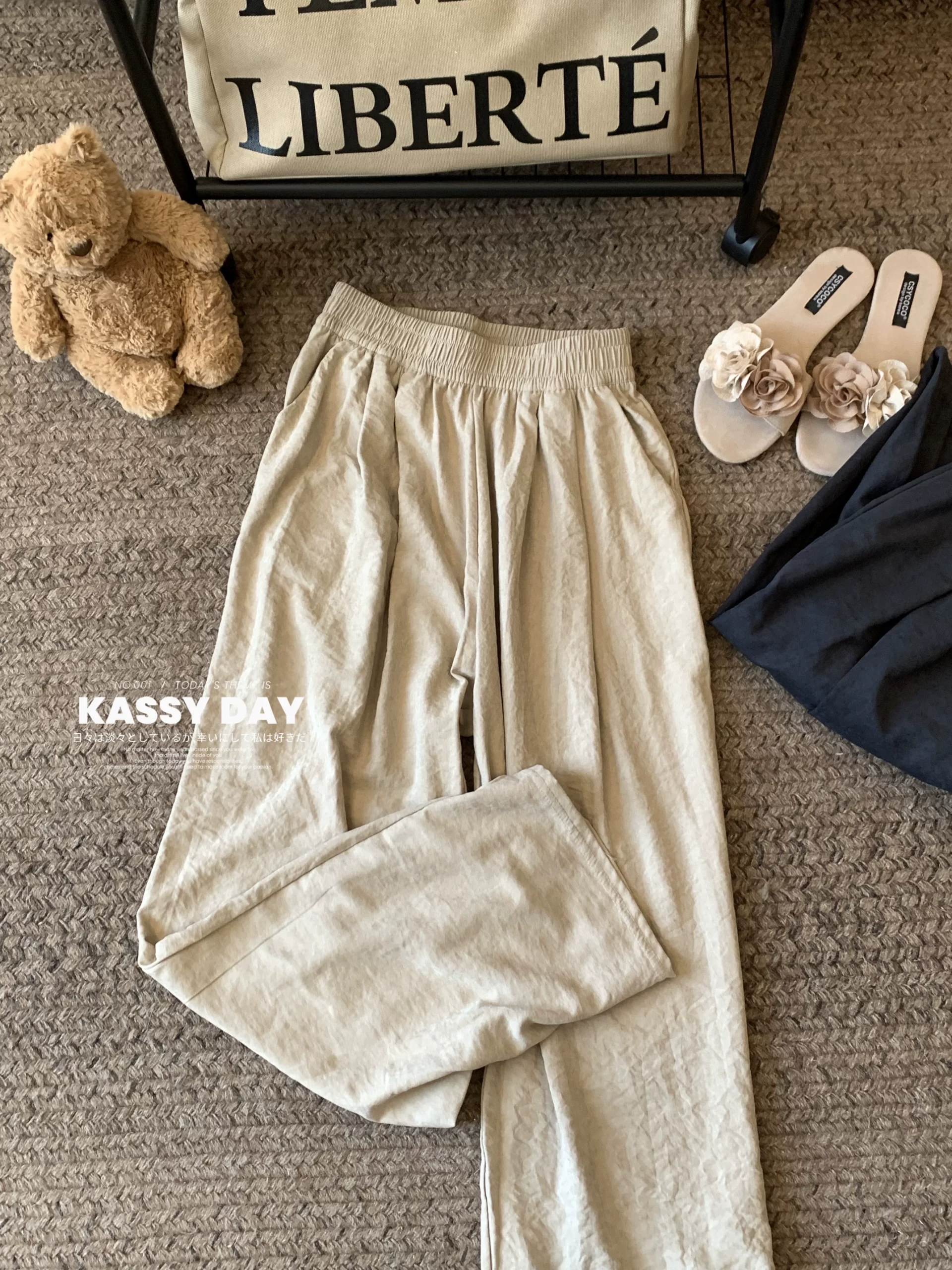 Ice silk wide-legged high-waisted textured casual pants for petites
