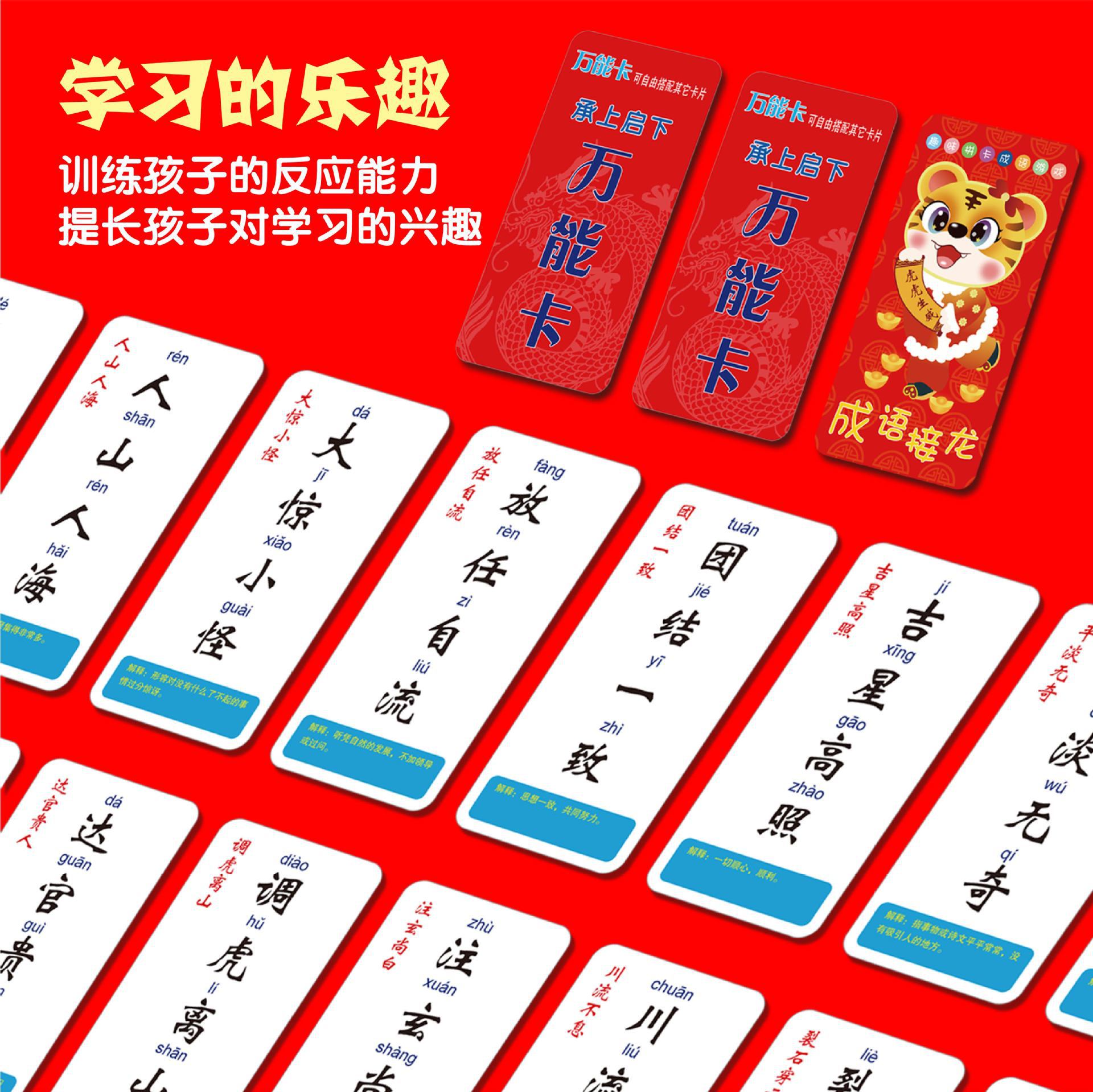 | nameOriginal | Idioms Solitaire Poker Children's Primary School Students Magic Chinese Characters Fun Literacy Spelling Puzzle Parent-Child Game Card |