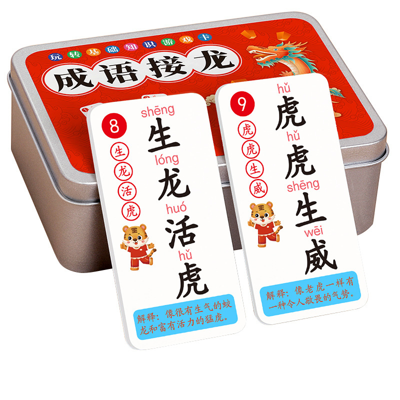 Idioms Solitaire Poker Primary School Students Card Board Game Card Game 6-12 Years Old Look at the Figure Guess Idioms Educational Toys