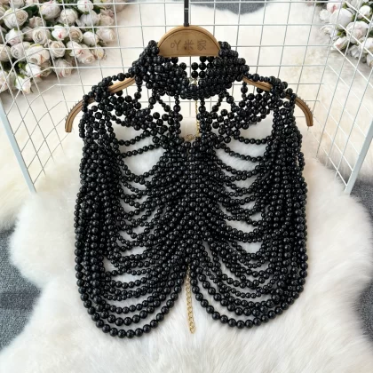 | nameOriginal | Imitation pearl clothes party dress accessories fashion sweater chain beaded necklace body chain catwalk performance decorative chain |