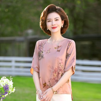 | nameOriginal | Imitation Silk Top Mother's T-shirt Women's Summer 2024 New Women's Loose Fashion Silk Satin Shirt |