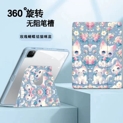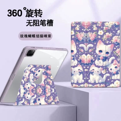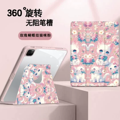 | nameOriginal | [Imported microfiber leather] Rose bow cat protective case for ipad pro new air6 tablet air5 tenth generation 10 mini 2024 with pen slot 11 inches 13 cute set |