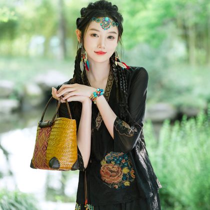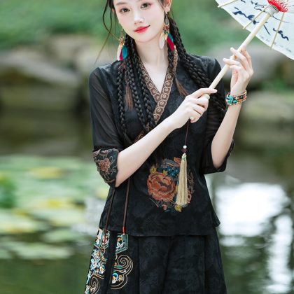 Improved Hanfu Women's Clothing Chinese Style Top Small Tang Suit Young Version Zen Ethnic Style Summer Suit Women's Suit