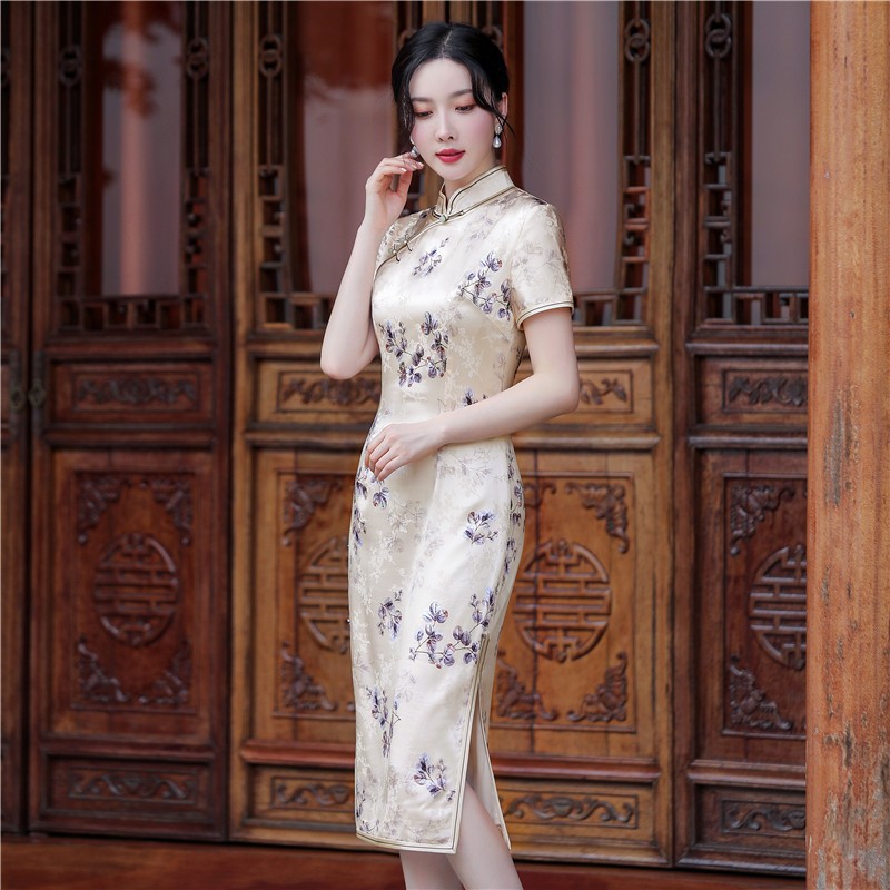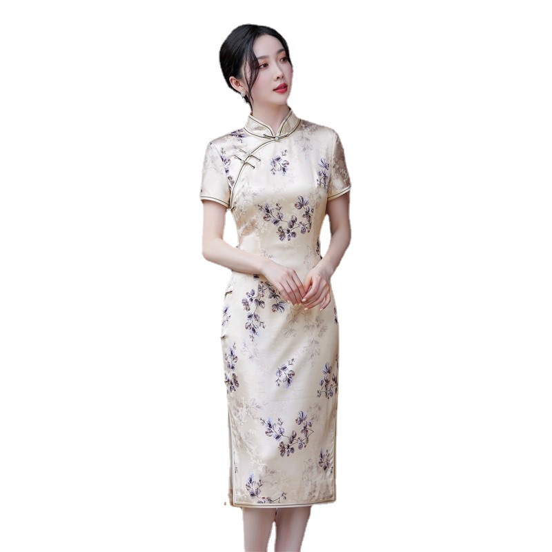 | nameOriginal | Improved high-end silk cheongsam Summer 2024 New Chinese style mulberry silk elegant temperament slimming mid-length |