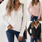 | nameOriginal | In stock Amazon 2024 early spring foreign trade V-neck lace stitching jacquard T-shirt popular elegant casual women's top |