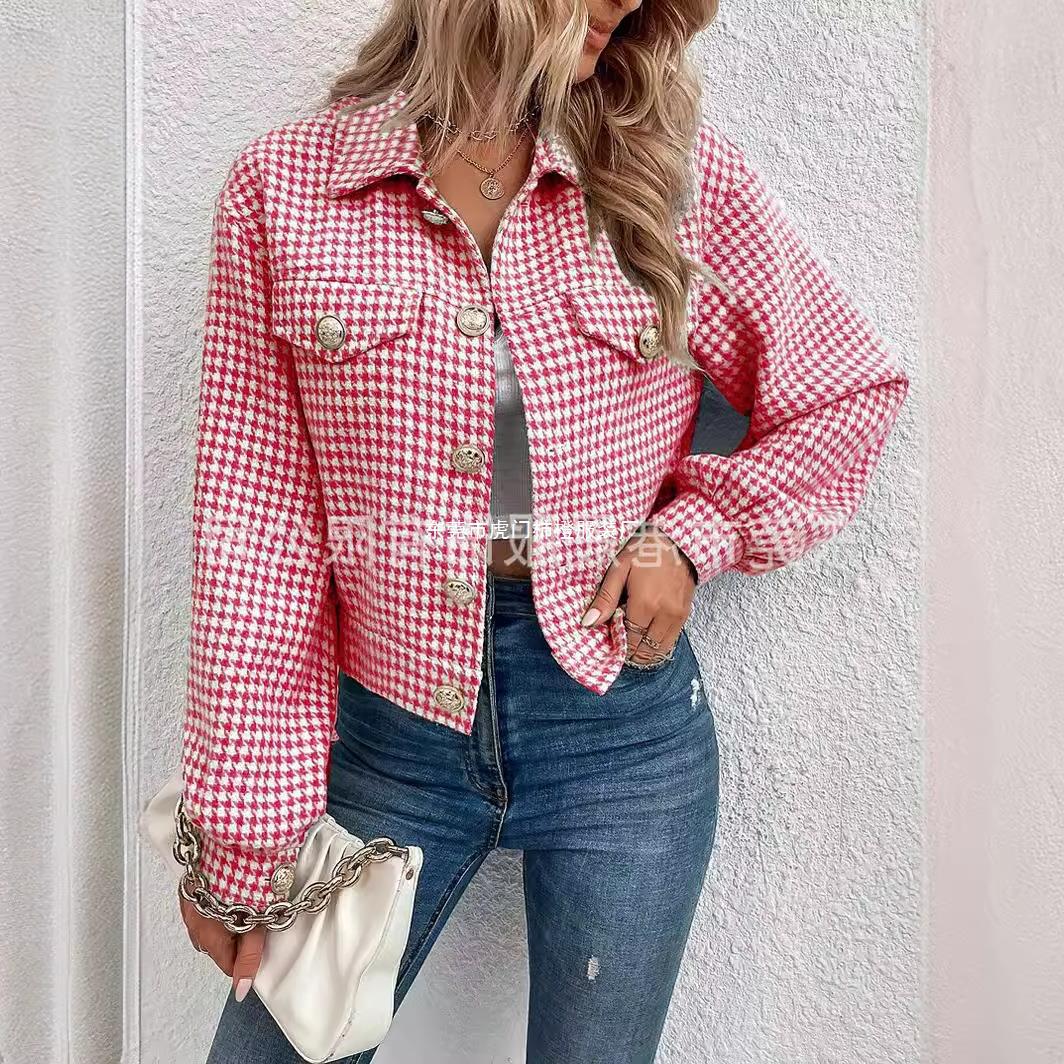 | nameOriginal | in stock Amazon ebay autumn and winter women's coat lapel single-breasted houndstooth jacquard jacket commuter coat women |