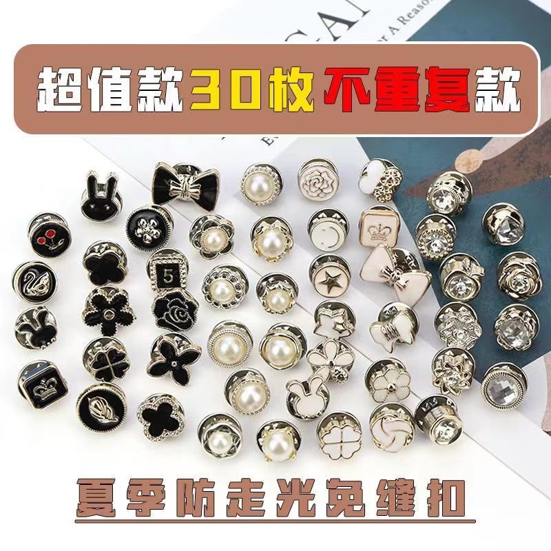 | nameOriginal | In stock anti-exposure buckle high-end hidden buckle chest pin buckle Chanel style neckline fixed detachable adjustable buckle female buckle |