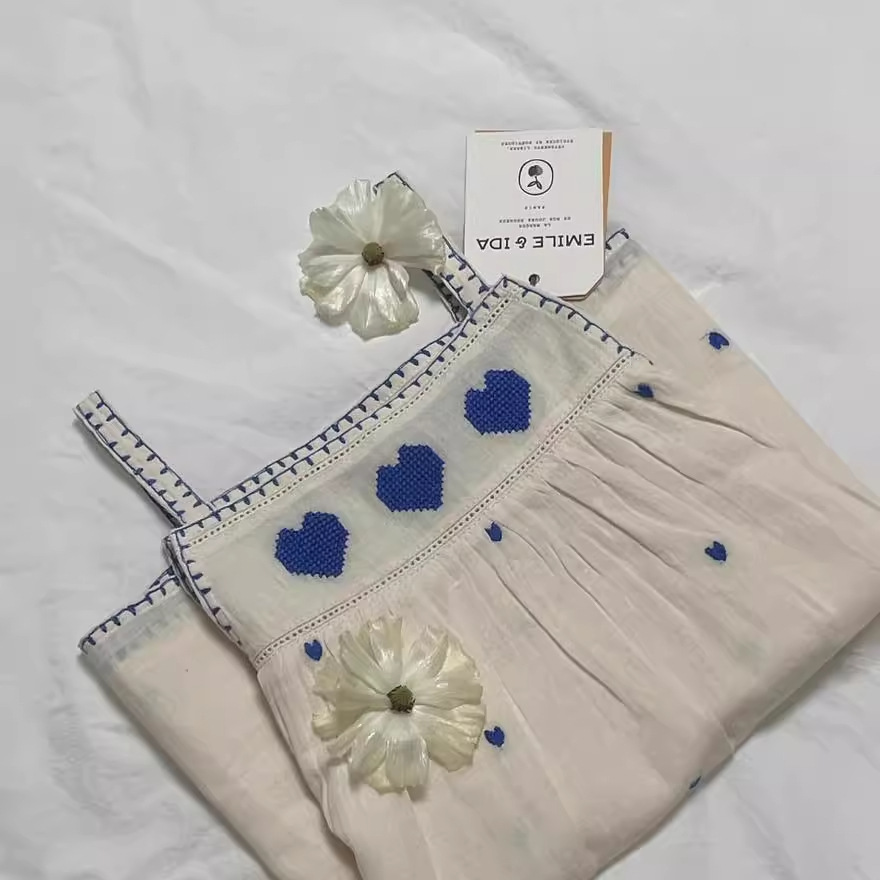 | nameOriginal | in stock Emile et ida Milk White Blue Heart Sling Top dress |