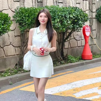 in stock hair ~ Cru one-piece culottes white cotton high waist shorts casual fashion asymmetric design skirt