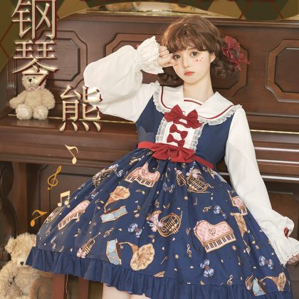 | nameOriginal | [in stock] Leopard Goes a Cat Original loita Bear Orchestra Cute Elegant Retro British Style dress |