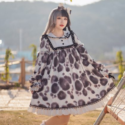 | nameOriginal | [in stock] Leopard Makes a Cat Original lolita ~ Cream Cake Cow op/jsk |