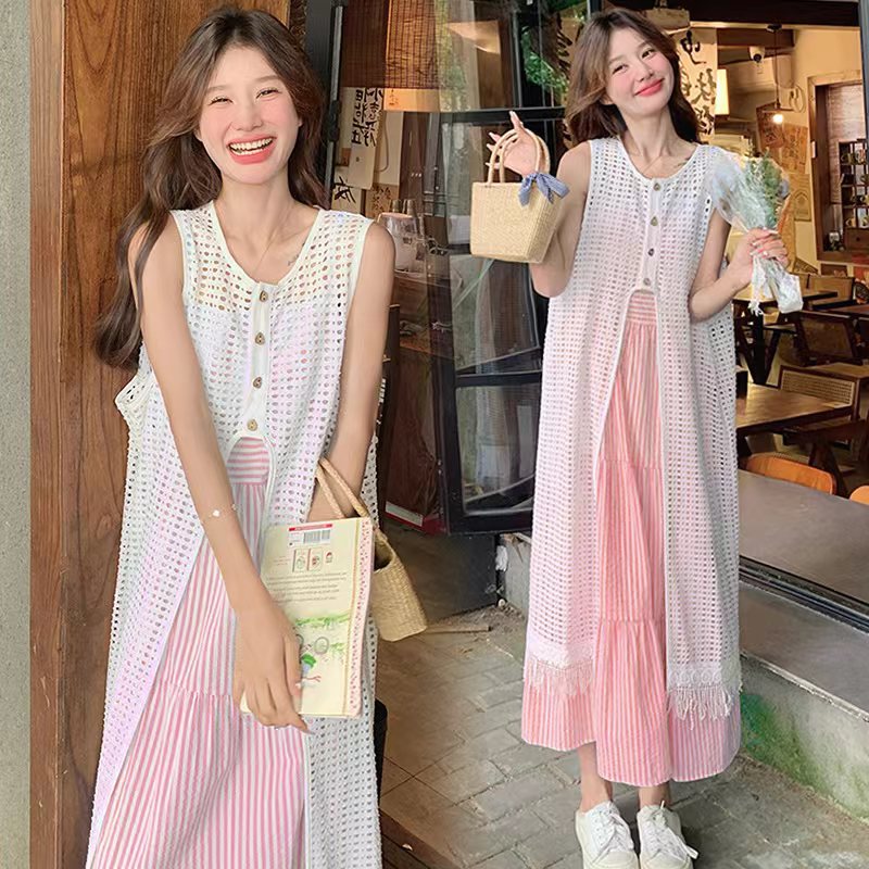 | nameOriginal | in stock Pregnant Women Summer Dress suit 2024 New Blue Sling Dress Coral Powder Sling Dress Shawl Chenille |