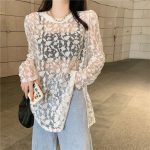 | nameOriginal | In the summer of 2024, the new style pure mesh pure sunscreen shirt with round neck and foreign style split lace long blouse |