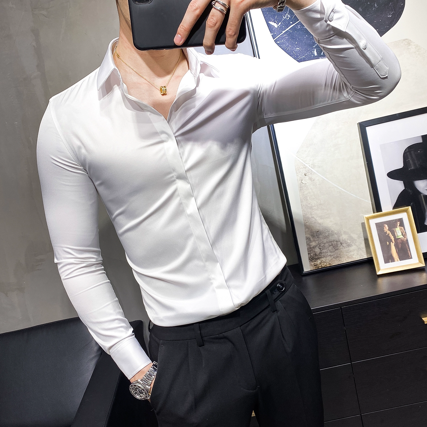 | nameOriginal | Inch-inch concealed button long-sleeved casual formal trendy men's shirt |