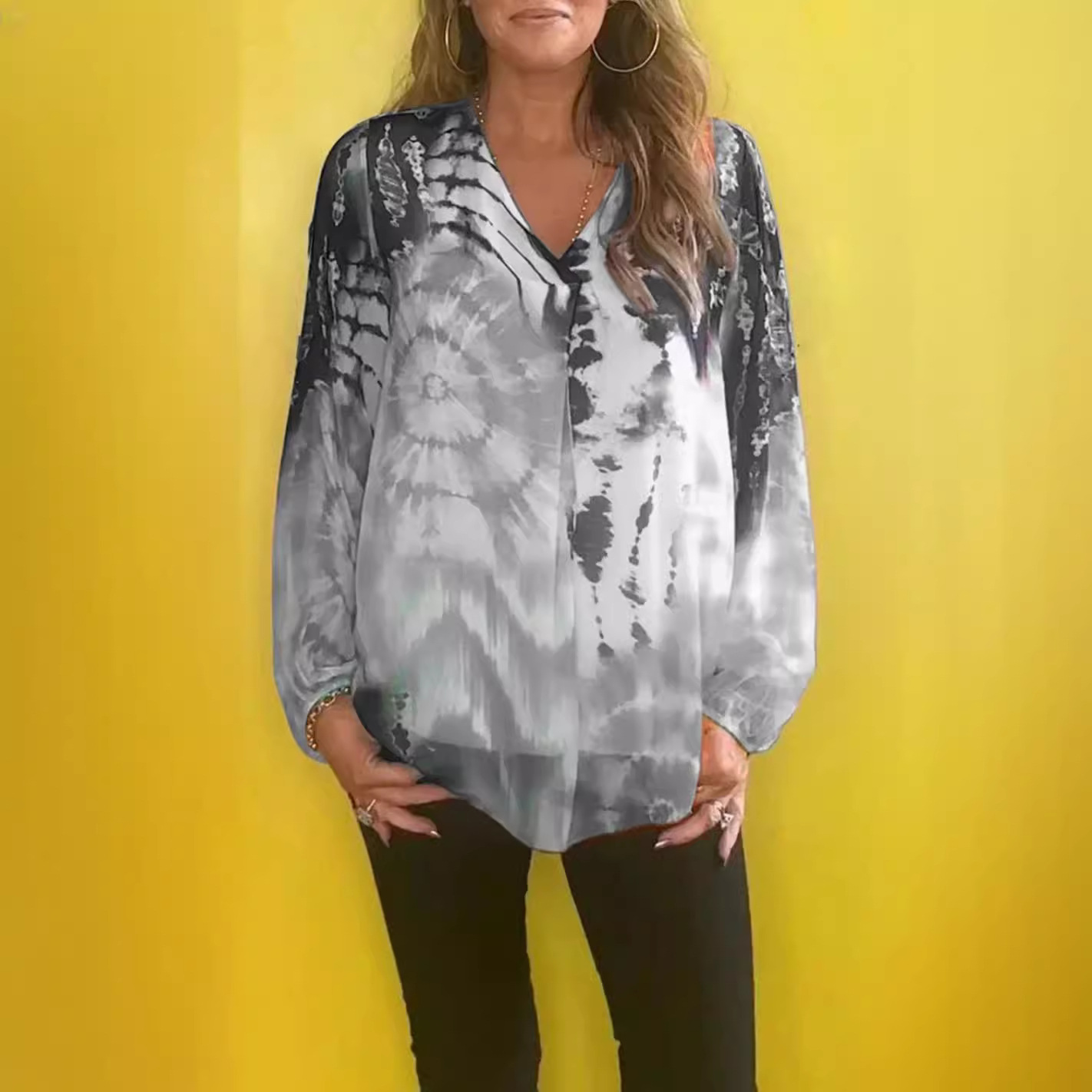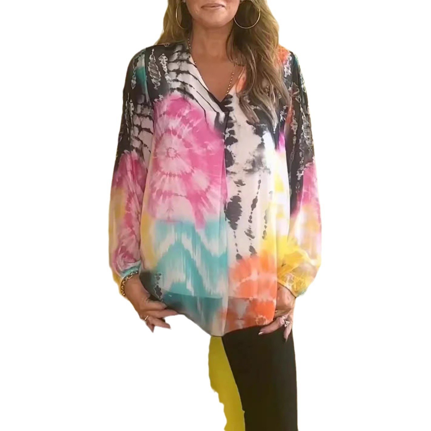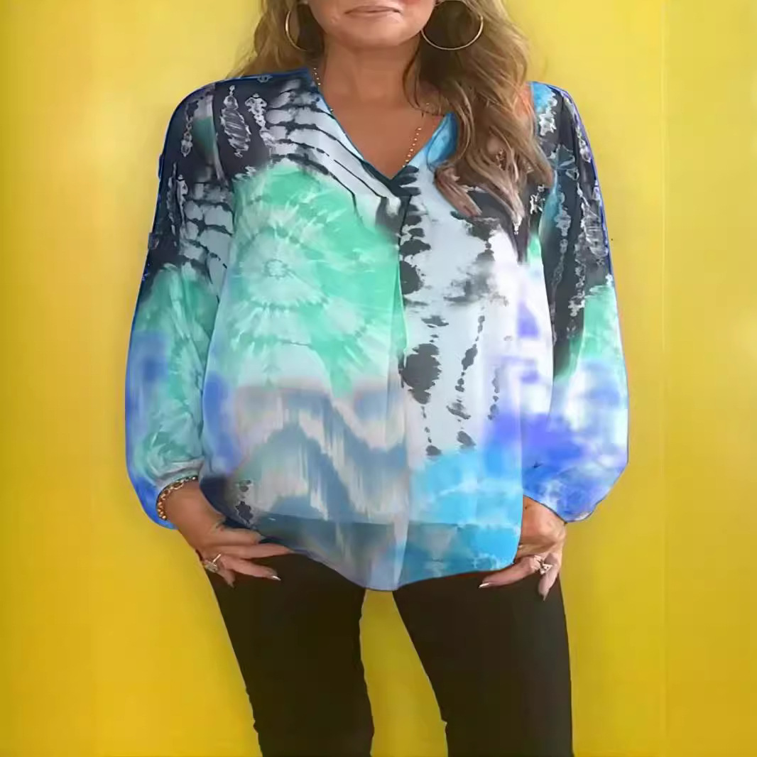 | nameOriginal | Independent Station 2024 European and American Cross-border Leisure Tie-dye Printing Multicolor plus size Women's V-neck Long Sleeve Women's Shirt |