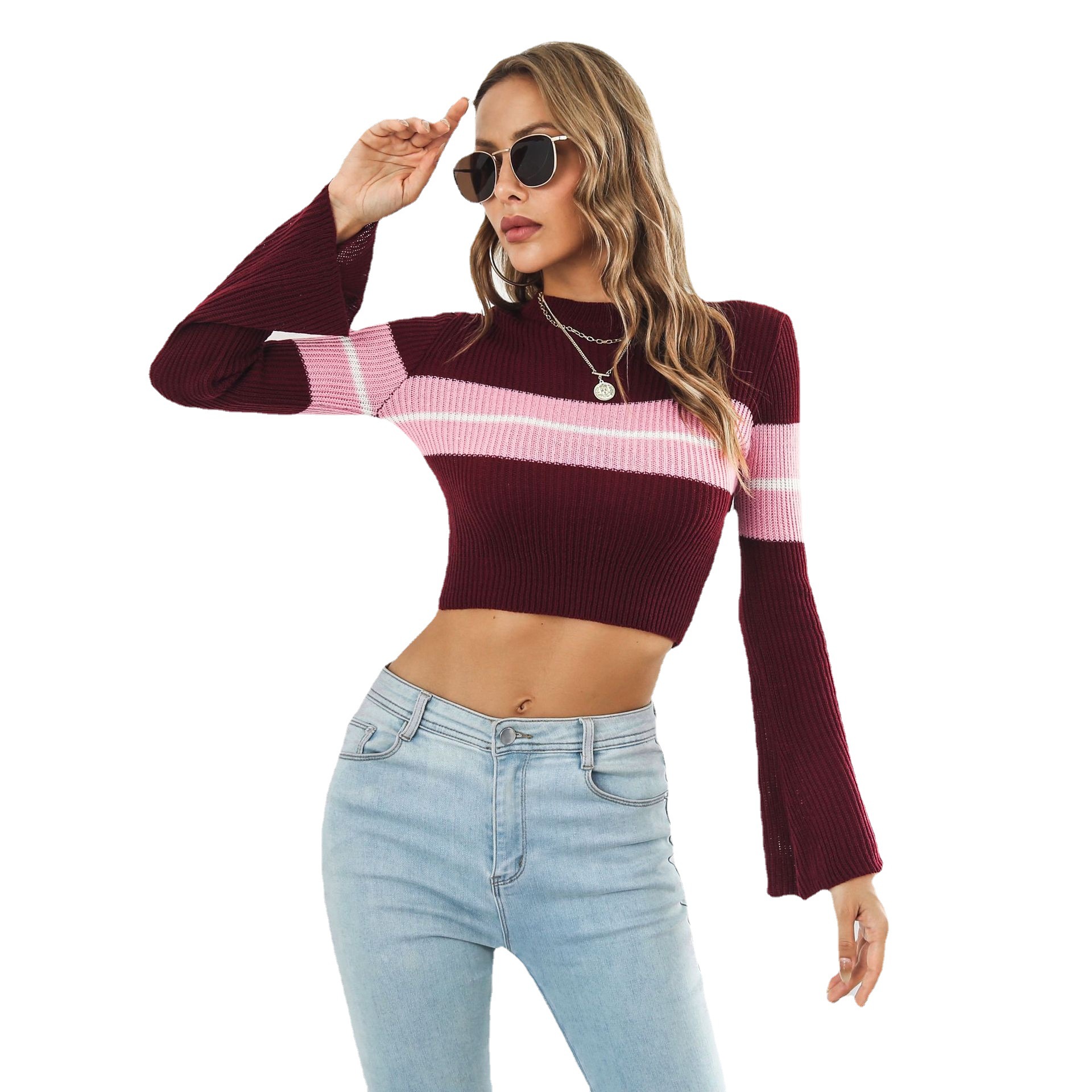 | nameOriginal | Independent station explosions real shot striped contrast color short sweater women's autumn and winter long sleeve sweater European and American cross-border women's clothing |