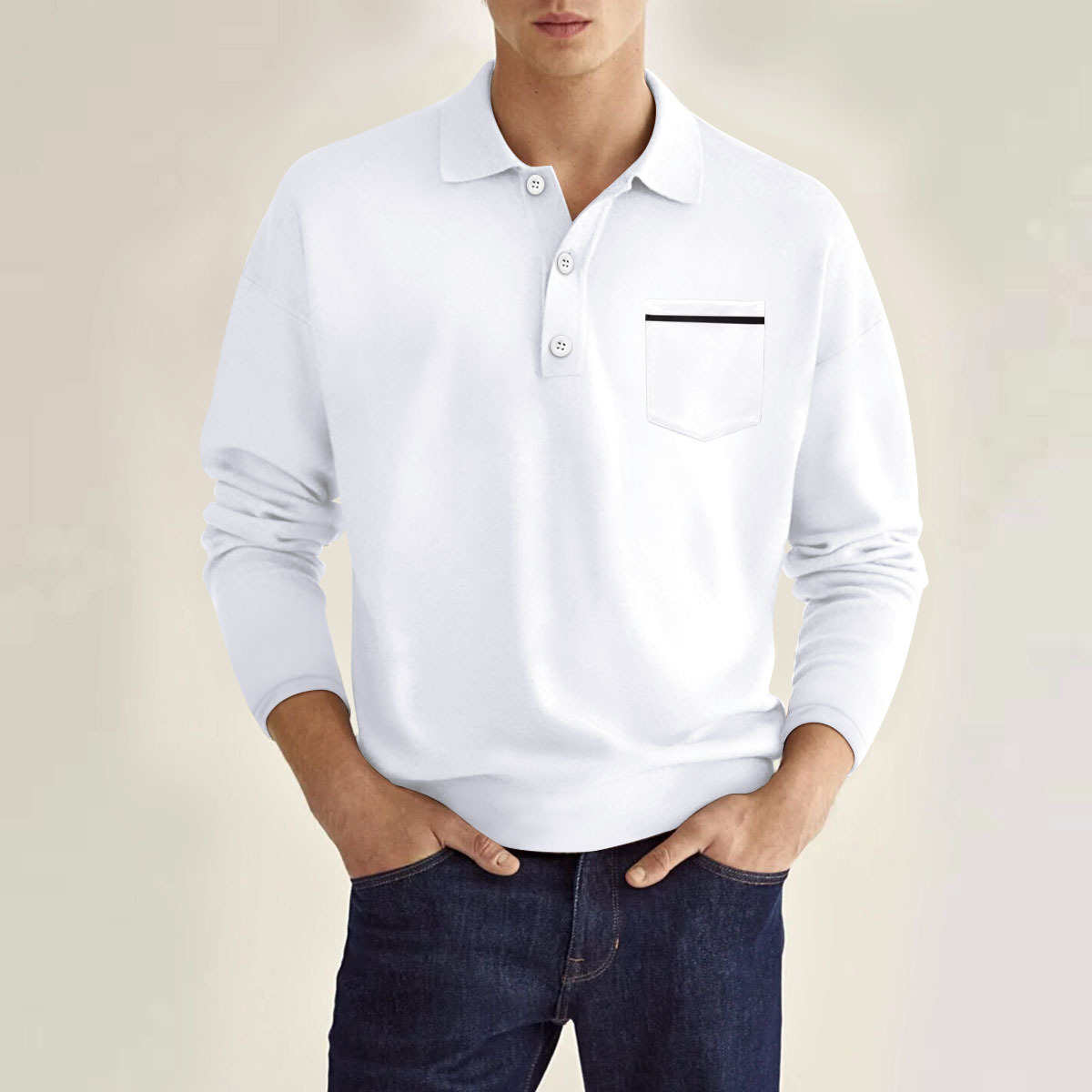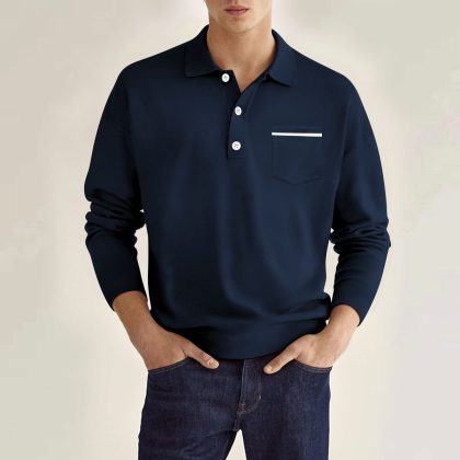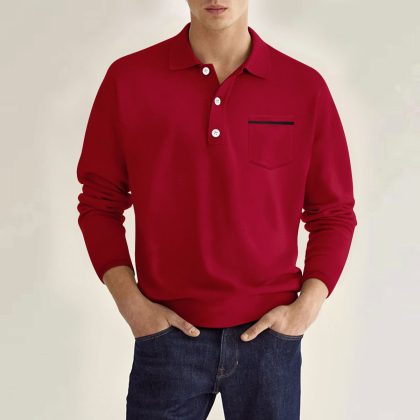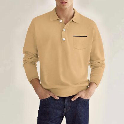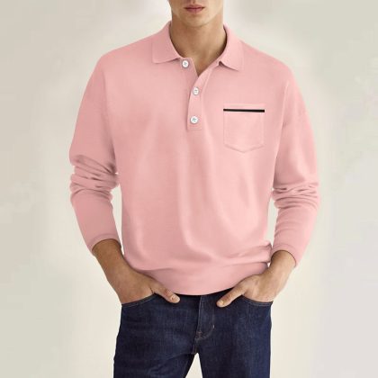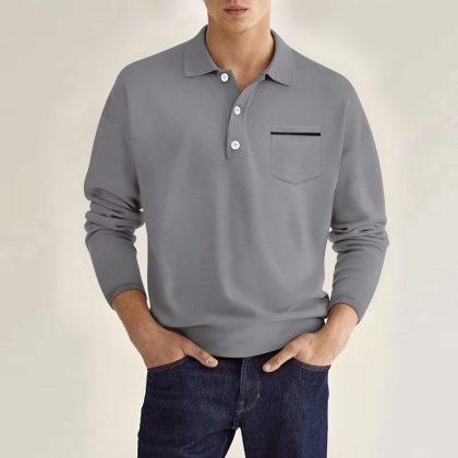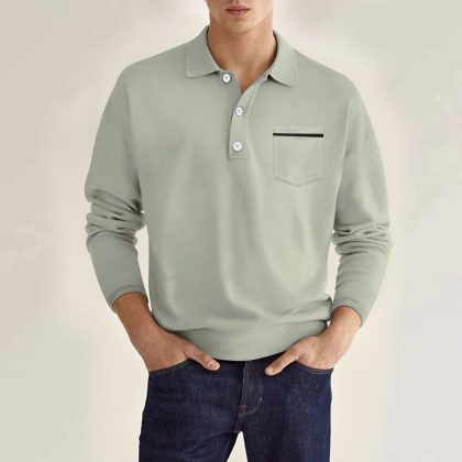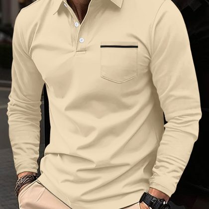 محطة مستقلة ترغب في أمازون الربيع الشهير بأكمام طويلة وفتحة رقبة على شكل حرف V وجيب حقيقي للرجال قميص بولو علوي غير رسمي