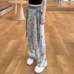 | nameOriginal | Ink Flower Ice Silk Wide Leg Pants Women's 2024 Summer New Thin High Waist Dape Large Size Loose Straight Pants |