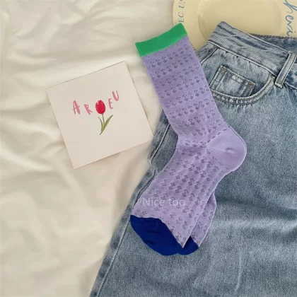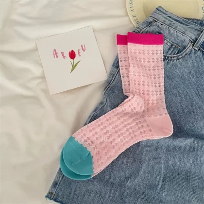 ins color-blocked glass silk polka dot internet celebrity style socks