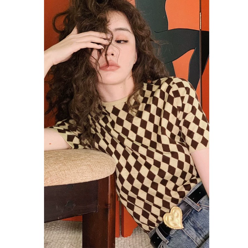 | nameOriginal | Ins design niche plaid T-shirt top short sleeves |