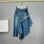 | nameOriginal | ins European irregular denim skirt women's trendy 2024 new spring high-waist loose slim pleated skirt |