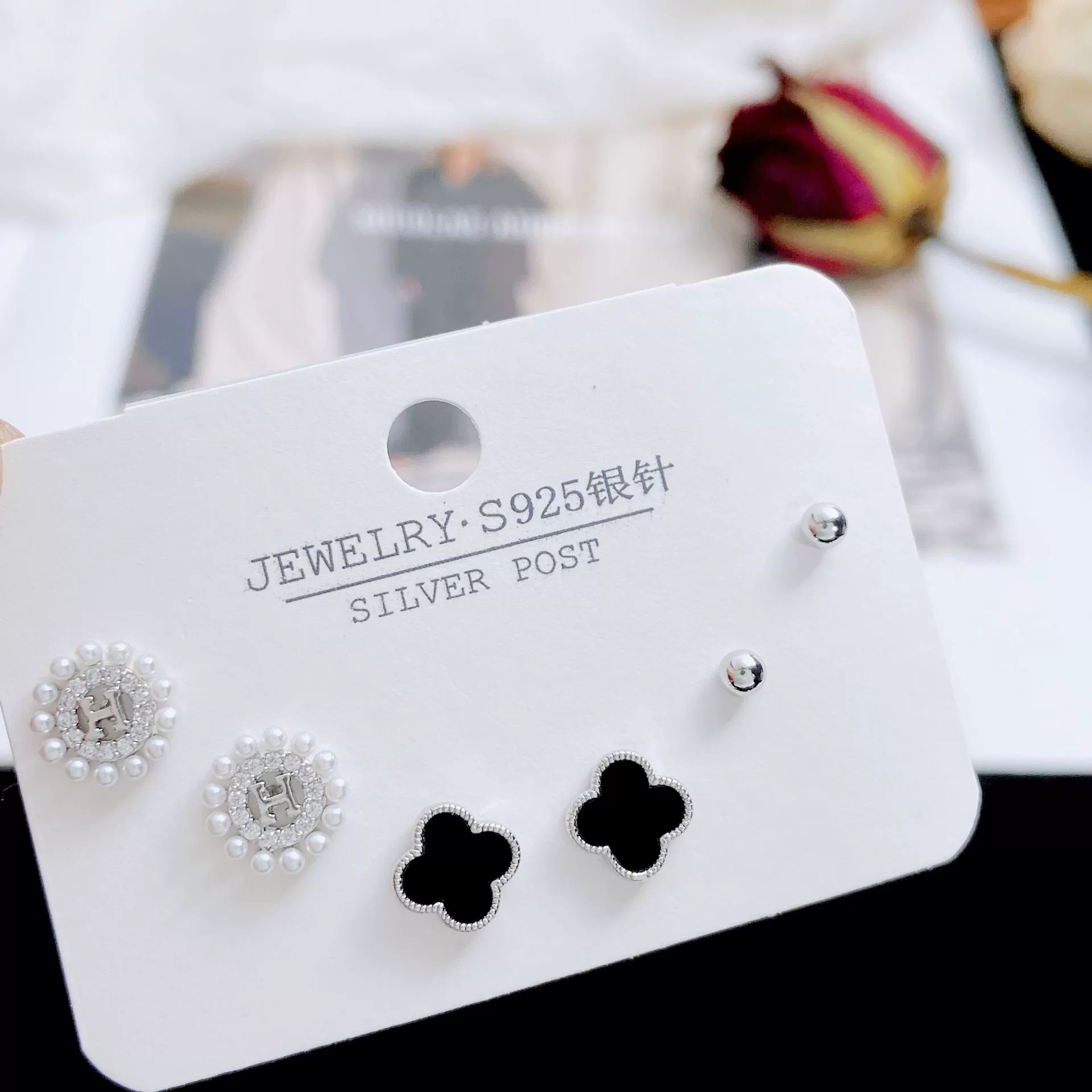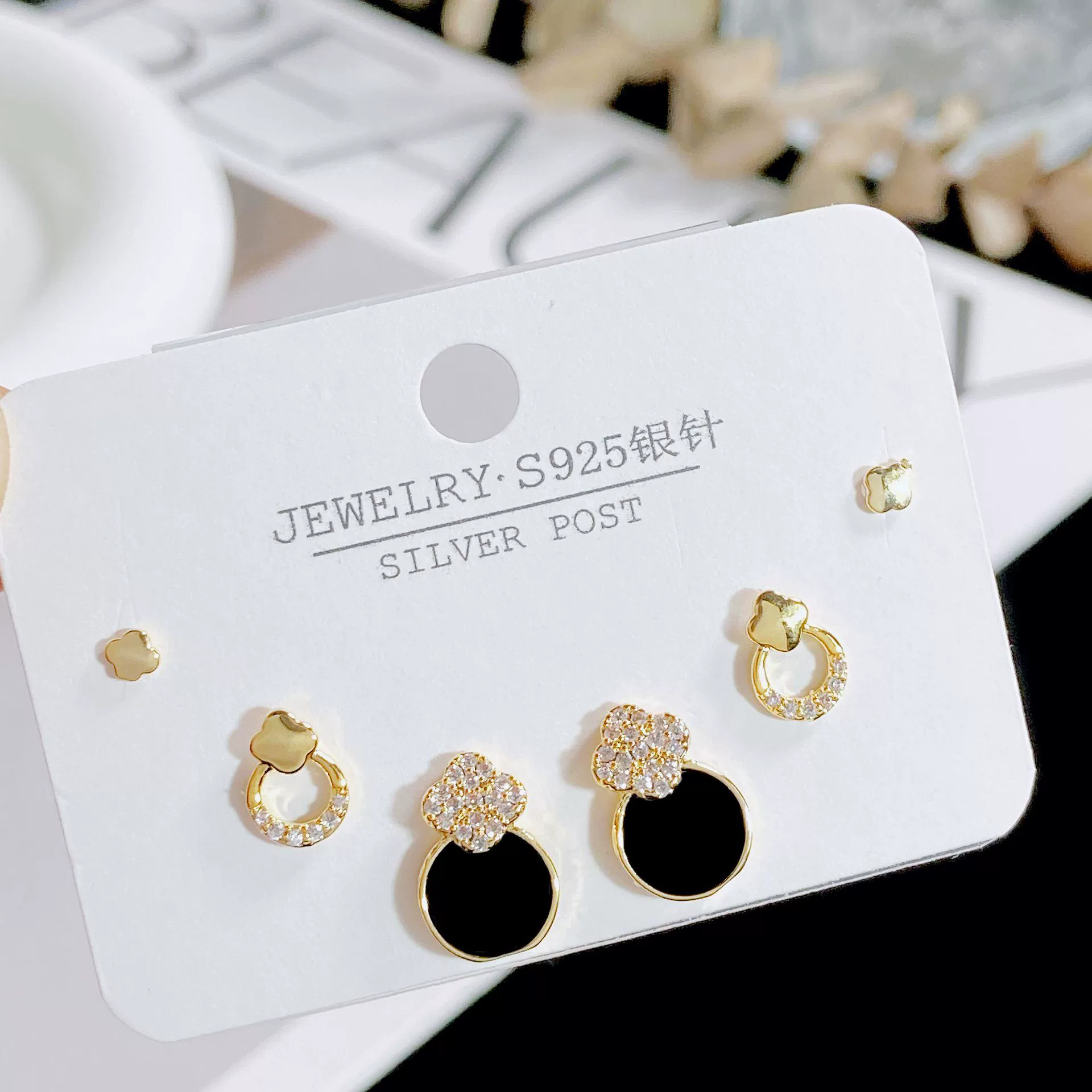| nameOriginal | ins exquisite earrings for women 925 silver needles four-leaf clover |