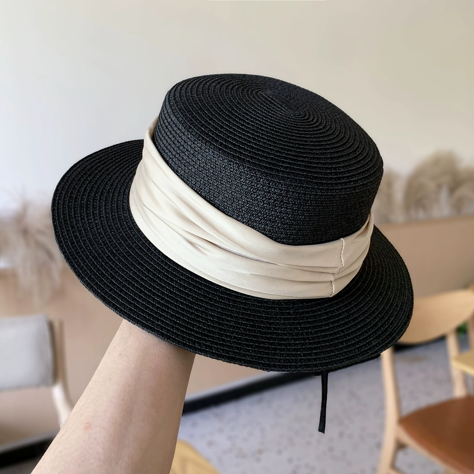 | nameOriginal | ins flat-top straw hat women's summer travel sun protection hat elegant British retro socialite holiday sun hat |