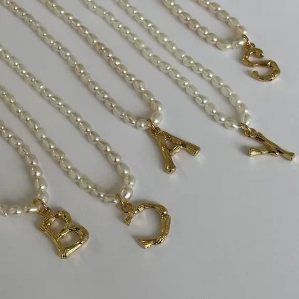 ins freshwater pearl necklace bamboo pattern pendant rice grain