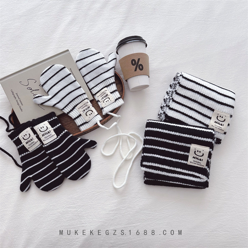 | nameOriginal | INS Internet celebrity children's striped smiley face scarf gloves two-piece set autumn and winter warm halter gloves knitted scarf |