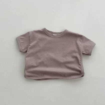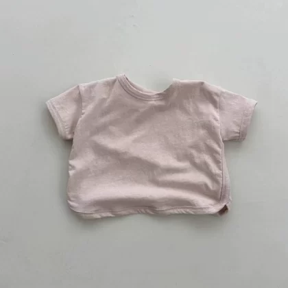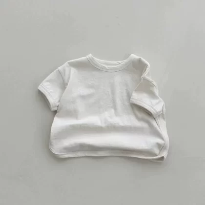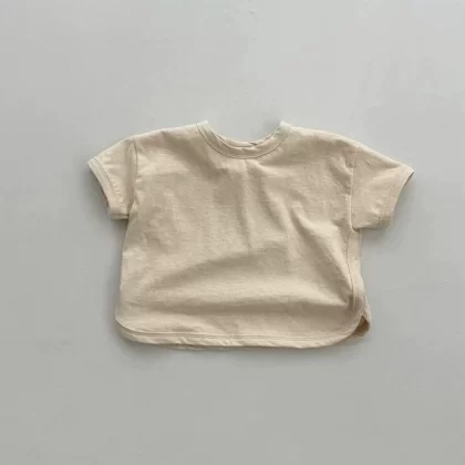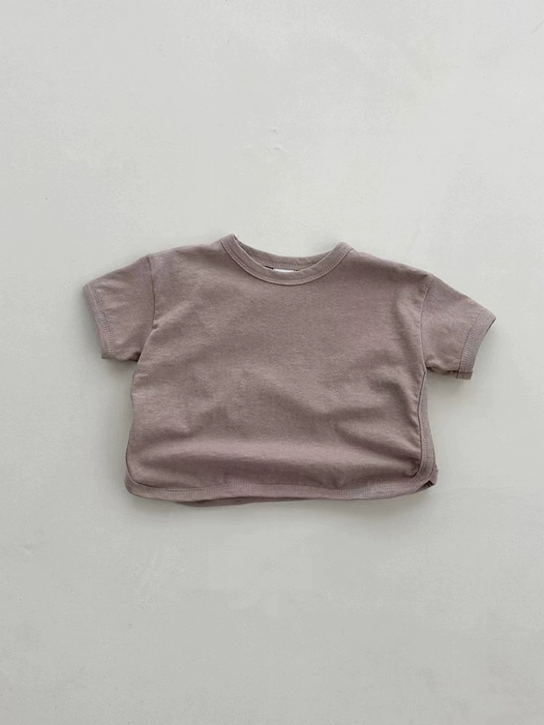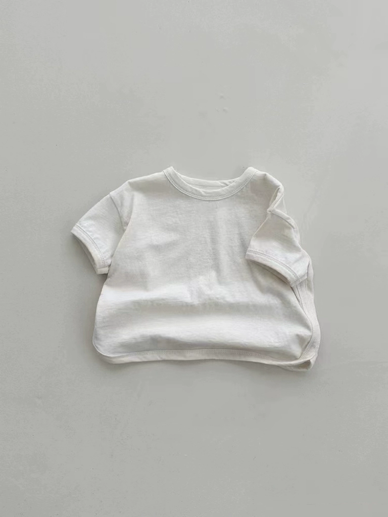 ins Korean solid color round neck top for men and women baby cotton summer regular style versatile casual top short-sleeved T