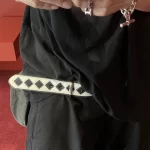 ins Korean style Stuy checkerboard belt men's trend young people unisex retro simple leather belt trend
