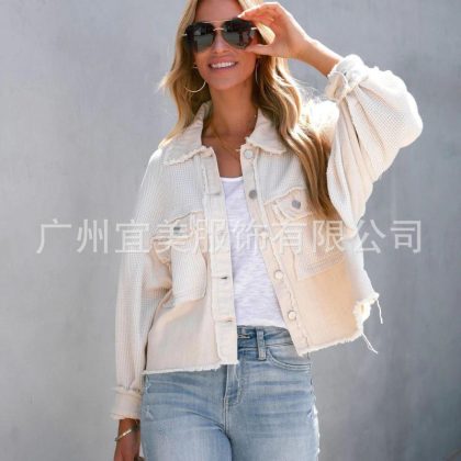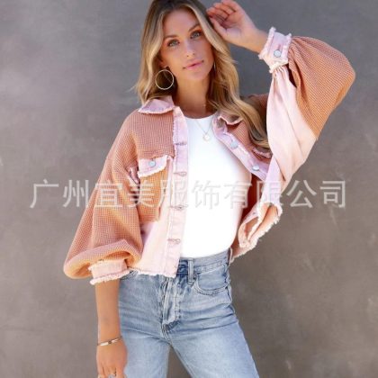 | nameOriginal | ins New 2022 Autumn and Winter European and American Women's Cotton Waffle Denim Patchwork Niche Loose Jacket Coat |