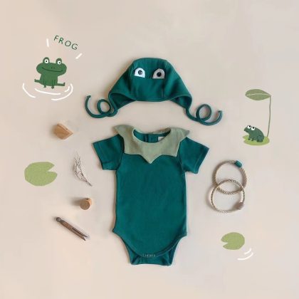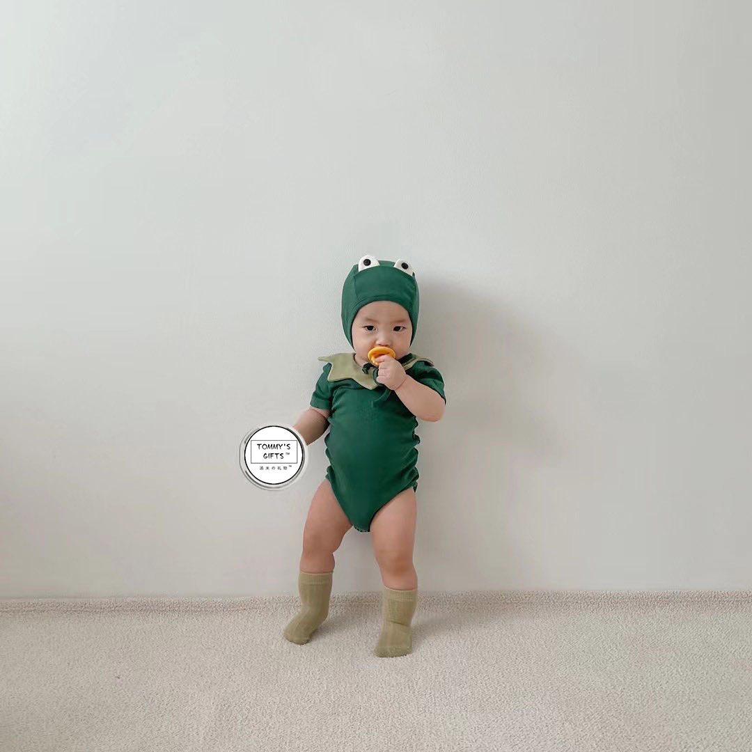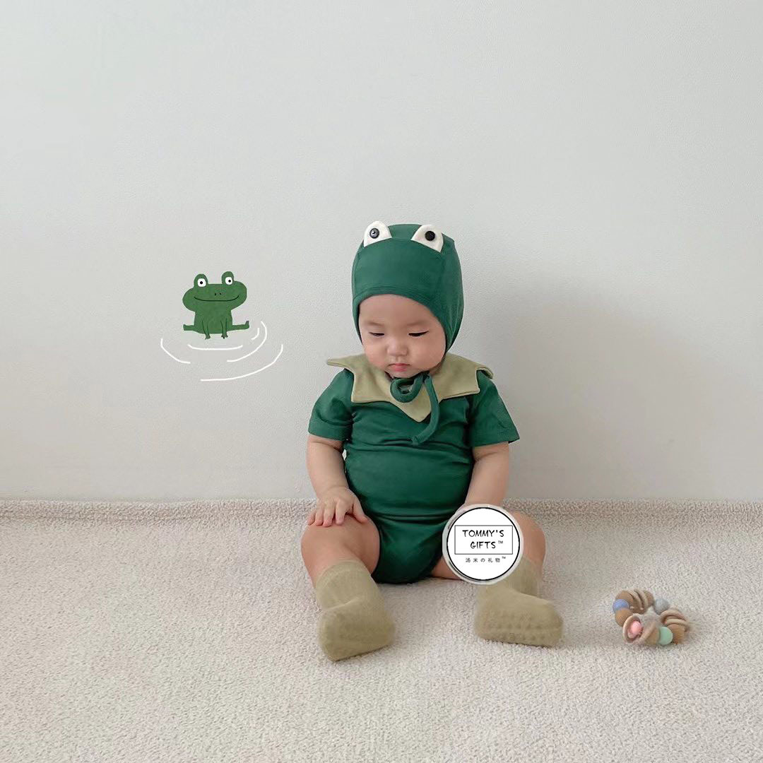 ins new frog shape baby jumpsuit 2024 Summer new baby romper out romper two-piece suit