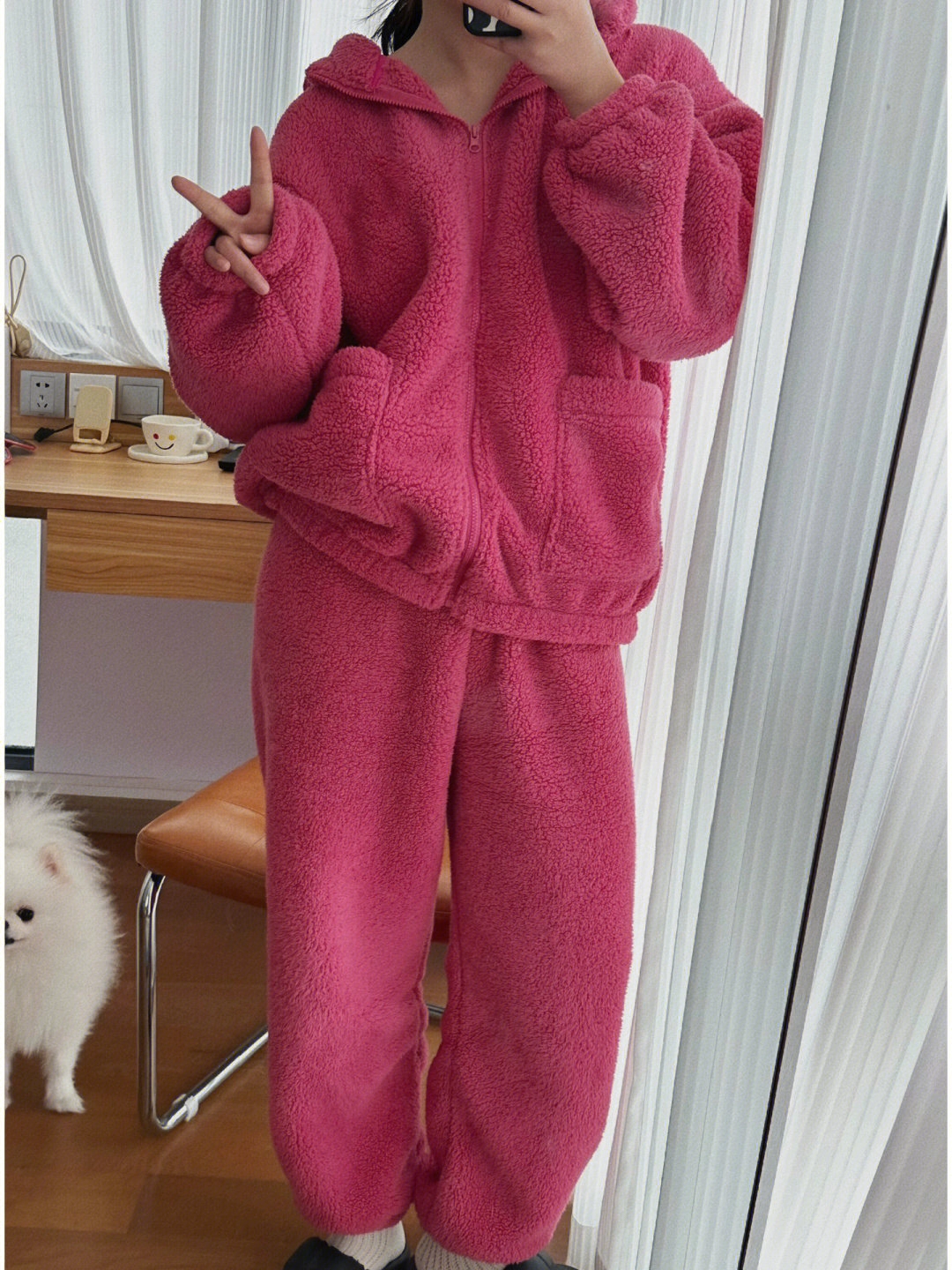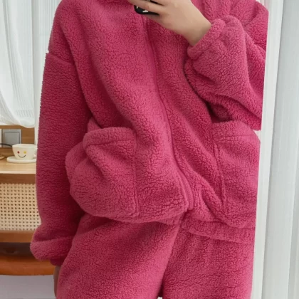 Ins style solid color long-sleeved coral velvet pajamas women's winter new thickened plush plush home suit can be worn outside