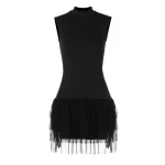 | nameOriginal | Ins style stand collar A-line mesh sleeveless dress |
