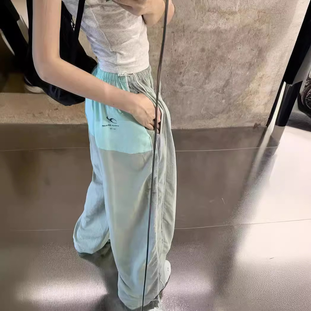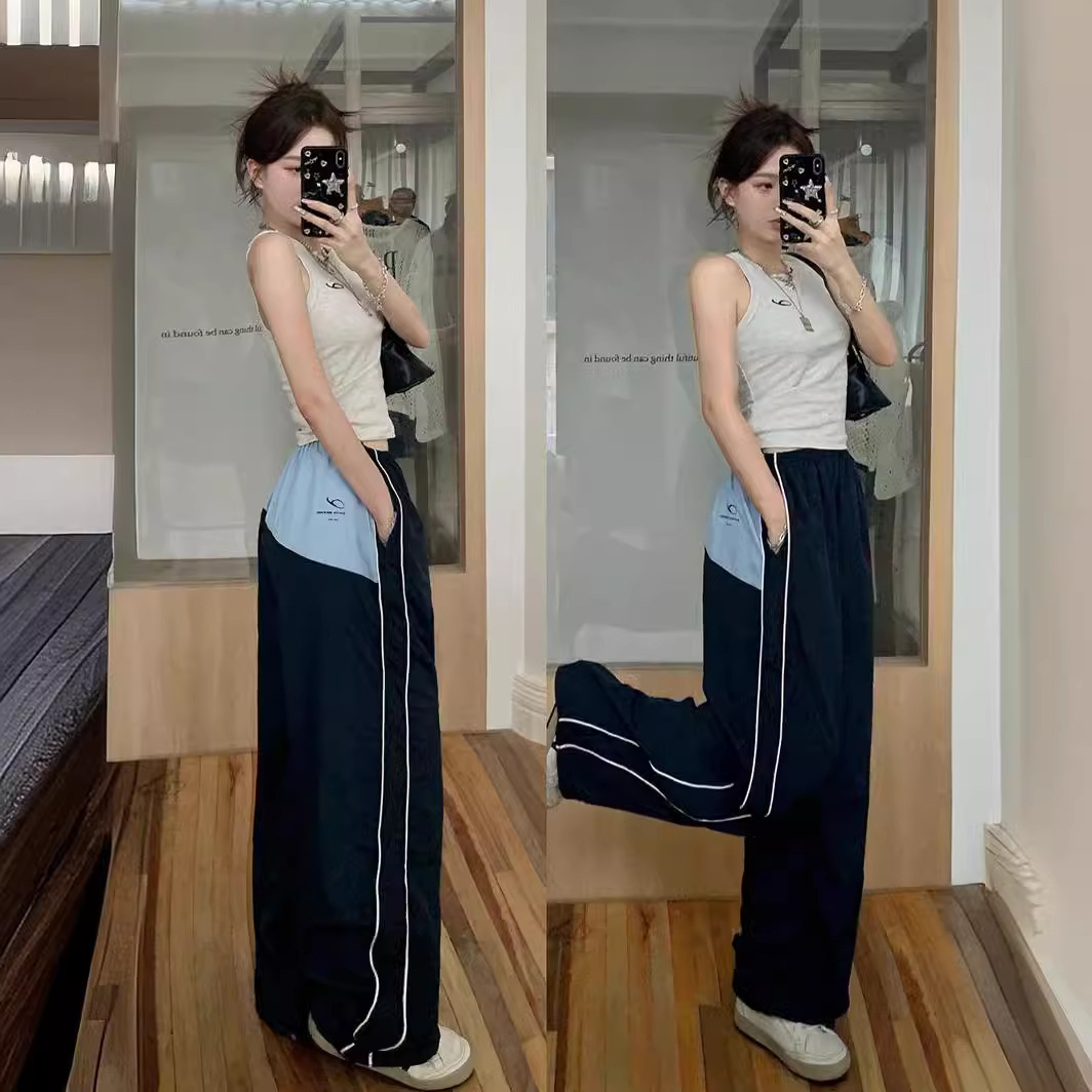 Ins Style Summer Thin American Style Retro Stitching Contrast Color Wide Leg Pants Loose Floor Casual Sports Trendy Trousers