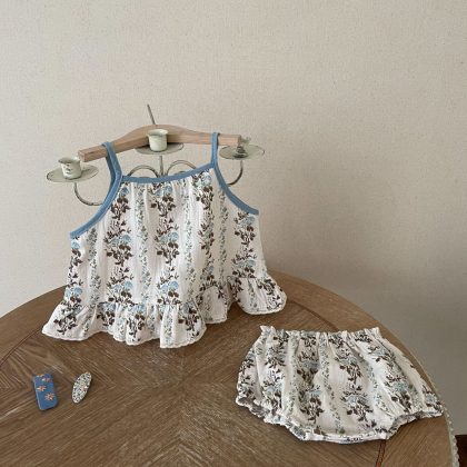 | nameOriginal | INS Summer Baby Strap Floral Set Baby Girl Color Matching Vest Shorts Two-piece Set |
