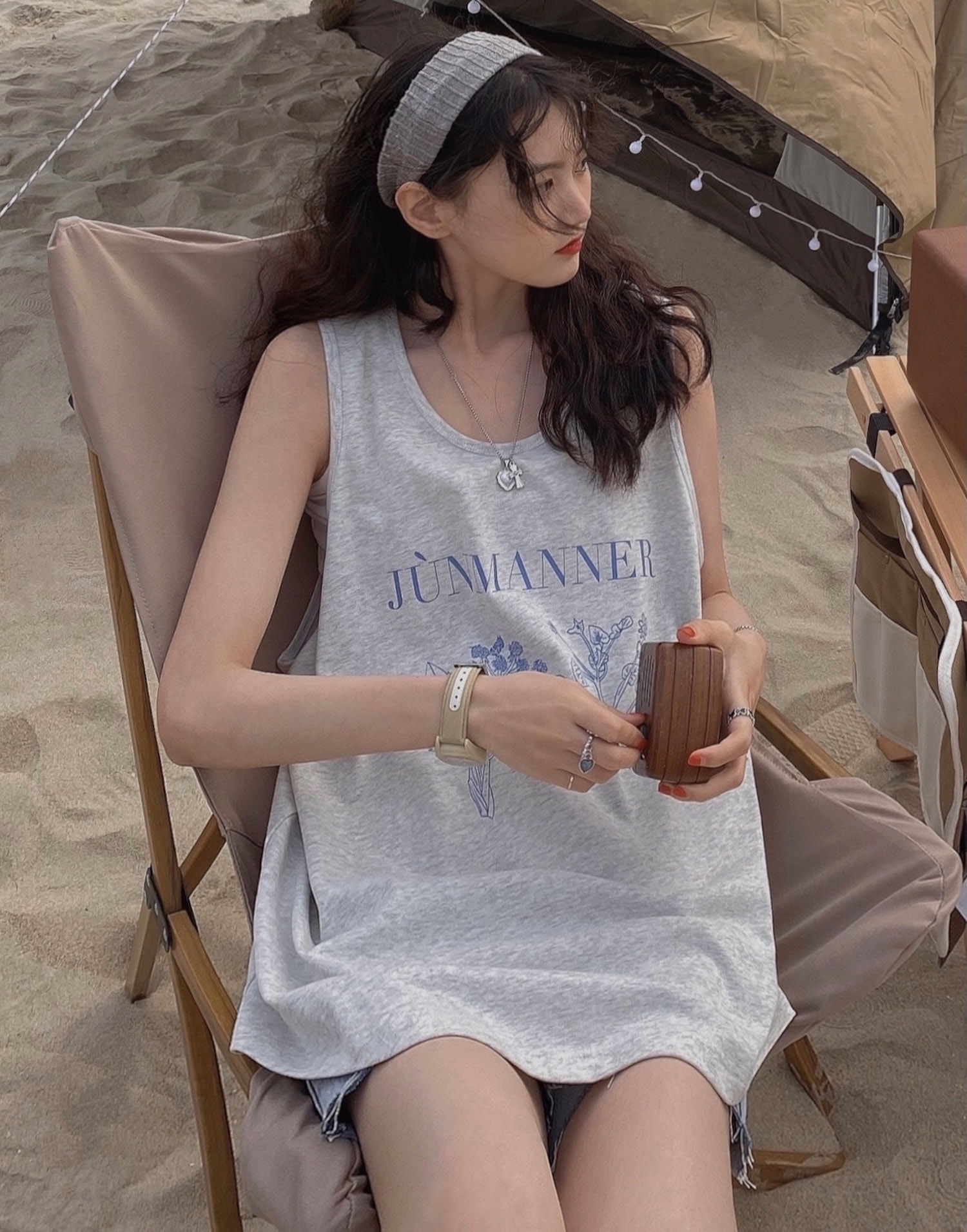 Ins Super Hot Grey Vintage Printed Camisole Vest Women's Summer New Korean Style Loose Mid-length Sleeveless Top