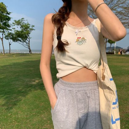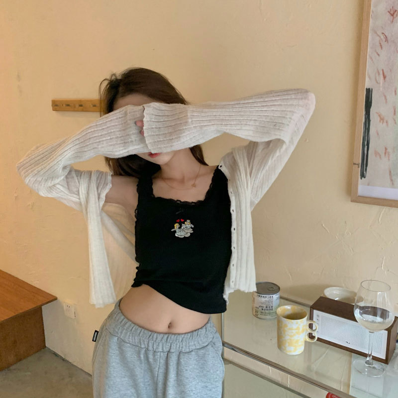 Ins Super Popular White Knitted Vest Sling Women's 2024 New Online Popular Hot Girl Style Short Inner Wearing Top