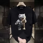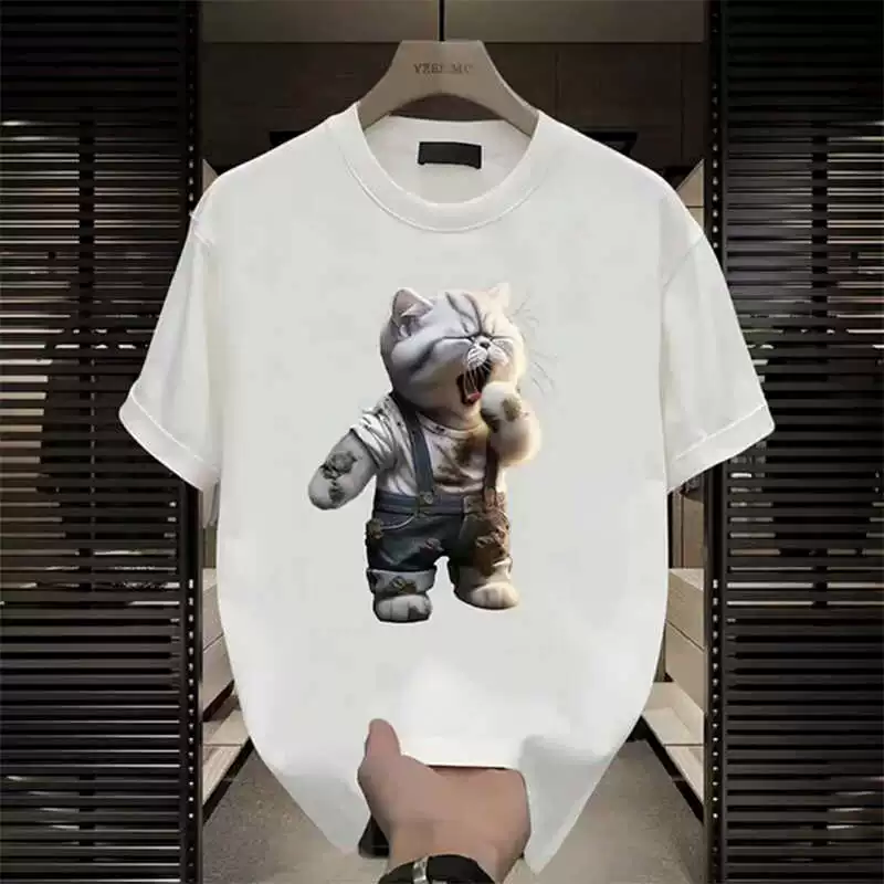 Ins العلامة التجارية العصرية 2024 الصيف التثاؤب القط طباعة قصيرة الأكمام تي شيرت الرجال القطن الخالص النمط الياباني طالب وسيم تي شيرت