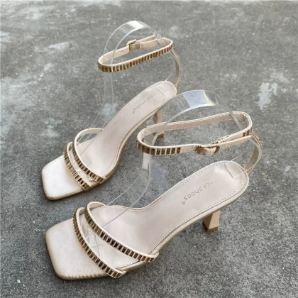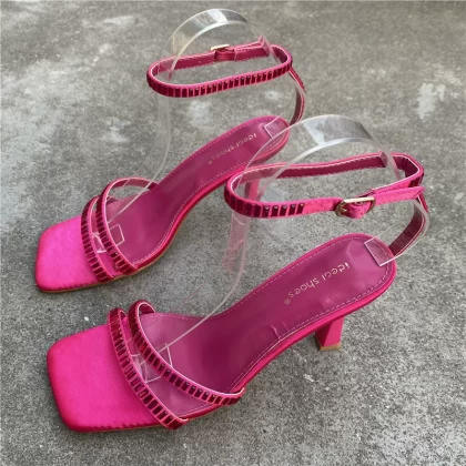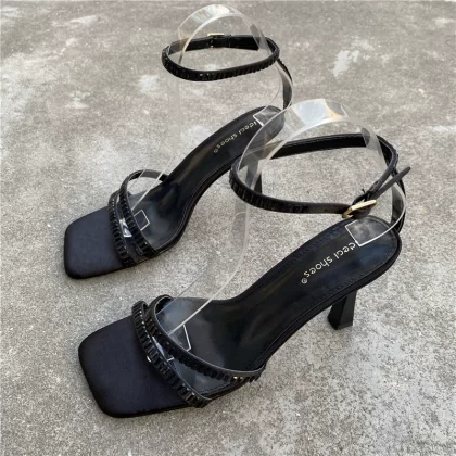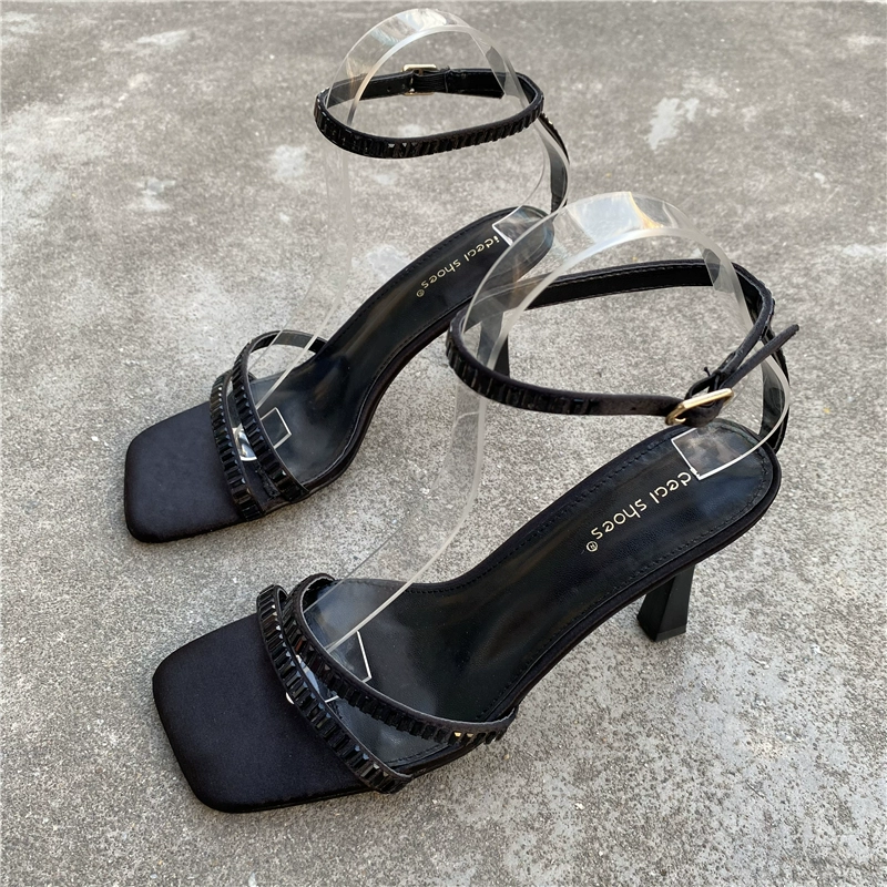 كعب ستيليتو مثير عصري مفتوح من الأمام مع أحجار الراين