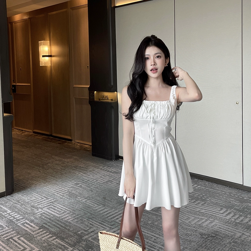 فستان Instahot الفرنسي بحمالات الخصر المرقعة