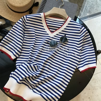 | nameOriginal | International popular blue and white striped V-neck knitted sea shirt |