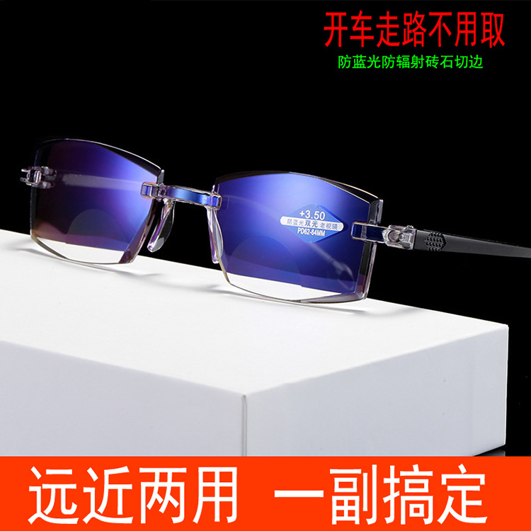 Internet Celebrity 9488 Looking Far Looking Near Trim Dual Light Presbyopia Glasses Middle-aged and Elderly Fashionable Presbyopia Glasses Anti-blue Glasses