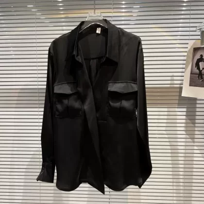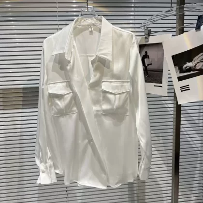 Internet celebrity autumn socialite double pocket beveled edge mercerized cotton shirt
