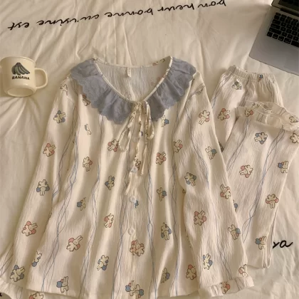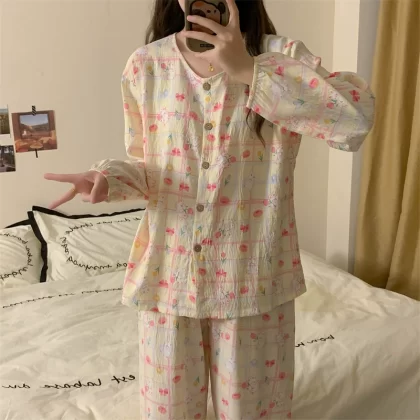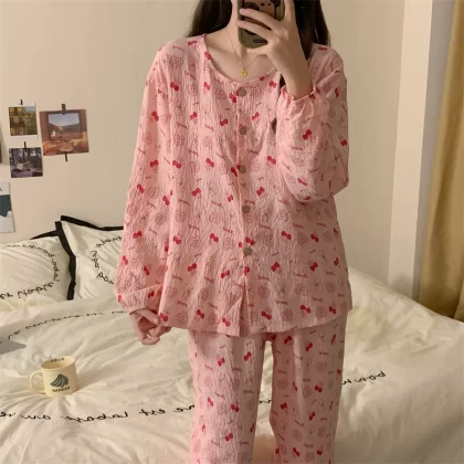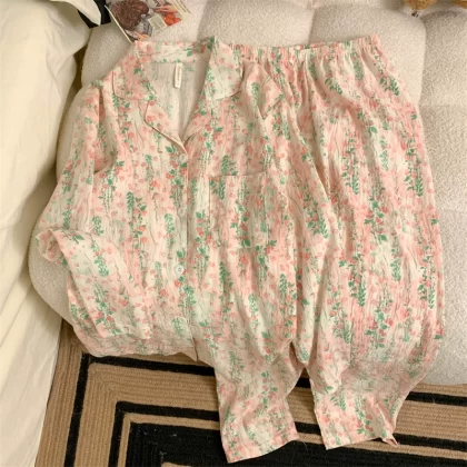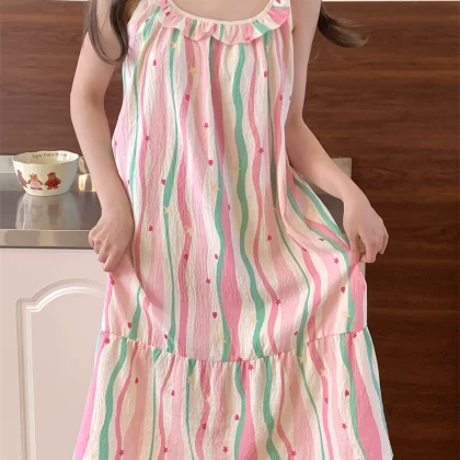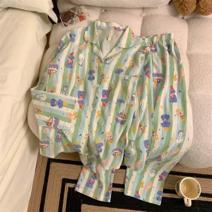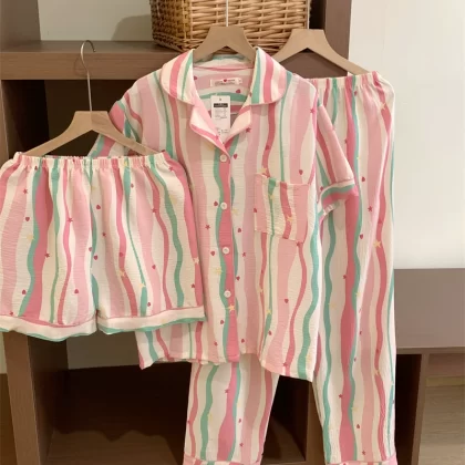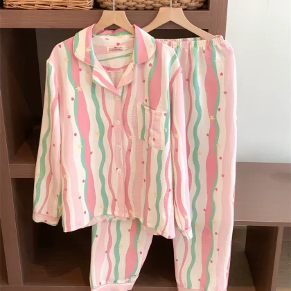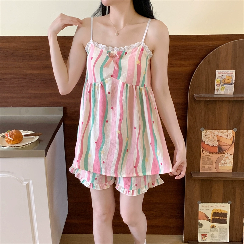 Internet celebrity dopamine women's sweet cotton striped pajamas