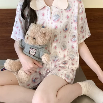 Internet celebrity ice silk women's cool and cute rabbit pajamas