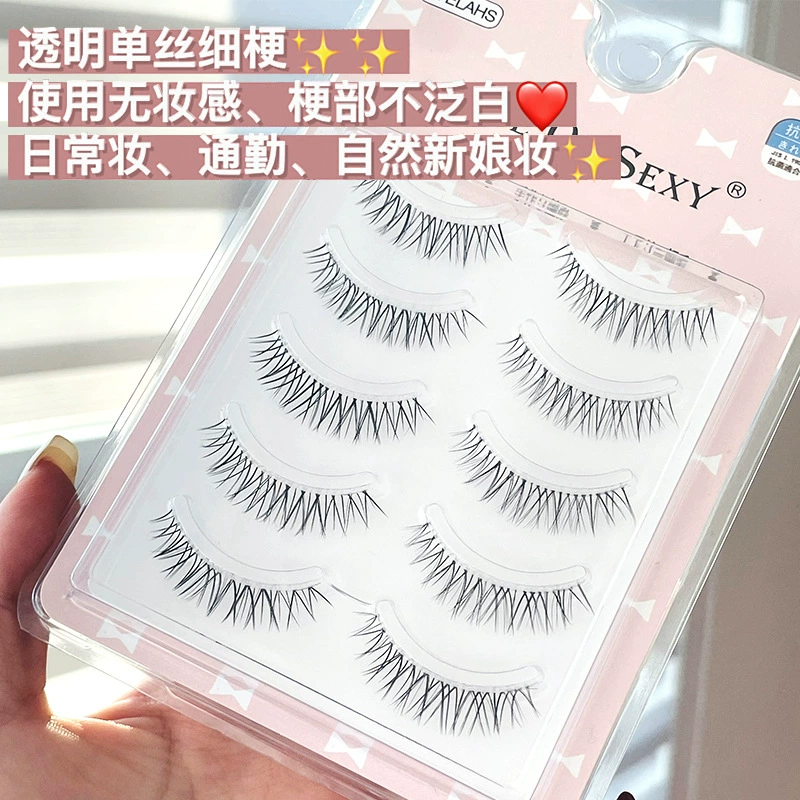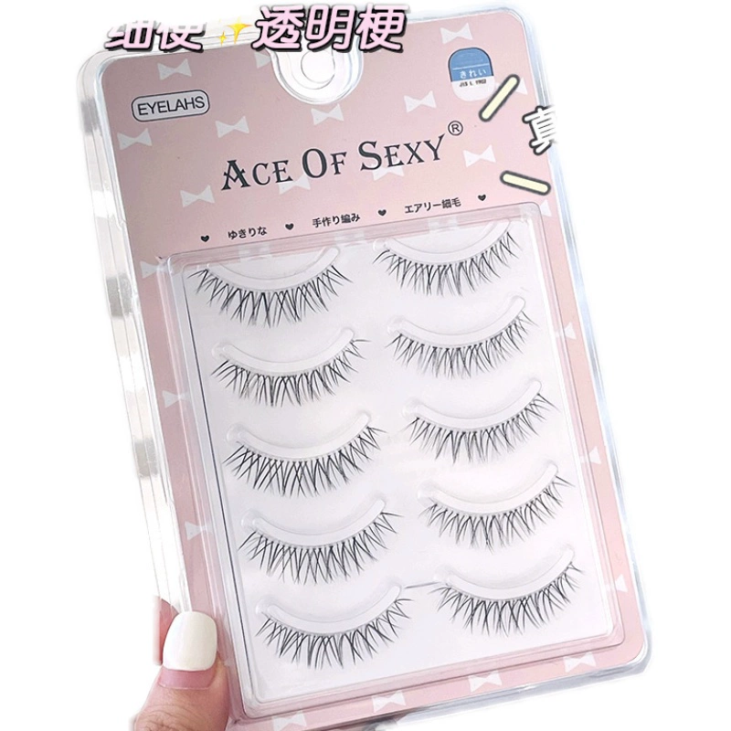 | nameOriginal | Internet celebrity naturally curly cross comic eyes V-shaped transparent stems nude makeup 5 pairs of eyelashes thin stems replacement A05 false eyelashes |
