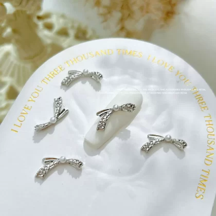 | nameOriginal | Internet celebrity new bow tie inlaid with pearls Japanese manicure jewelry popular alloy bow tie nail decoration small accessories diamond |