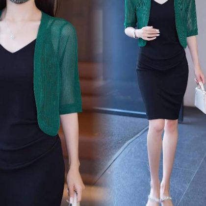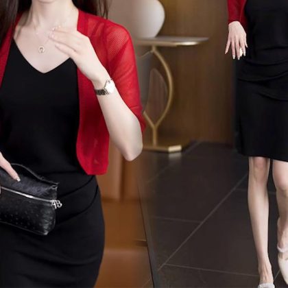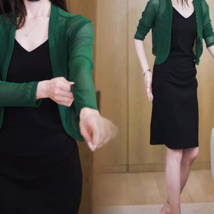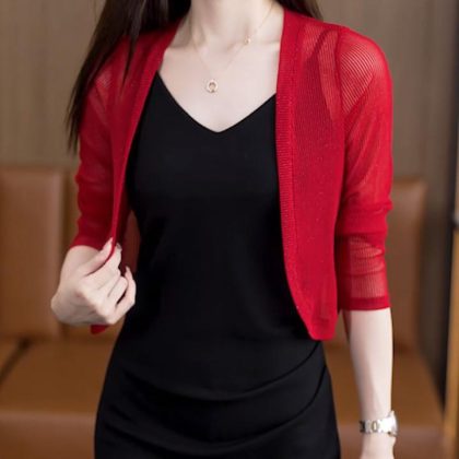 | nameOriginal | Internet Celebrity New Long Sleeve Small Shawl Top Coat with Slip Skirt Short Cardigan plus size Loose Blouse |